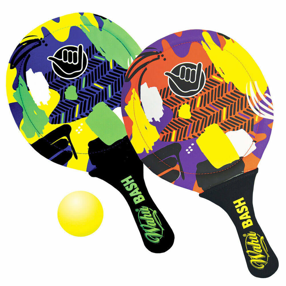 • El material de neopreno hace que tanto los bates como las pelotas sean impermeables para un juego en la playa.