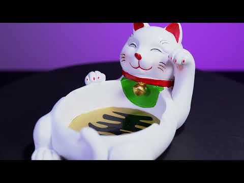 - Adorable ondeando cenicero de gato afortunado