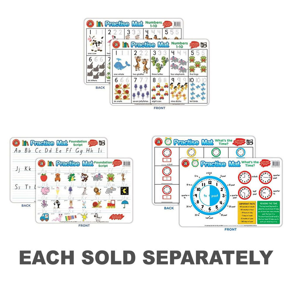 A los niños les encantará practicar sus habilidades de alfabetización y aritmética con estas atractivas y coloridas alfombras de práctica. Es importante destacar que este es el único producto en el mercado adaptado al plan de estudios de Australia. Exclusivo de este producto; El tapete se puede usar con un bolígrafo en seco que permite que se limpie para su uso una y otra vez. Alentados, los niños pronto dominarán las habilidades de escritura a mano y aritmética en las alfombras de práctica a través del juego repetido.