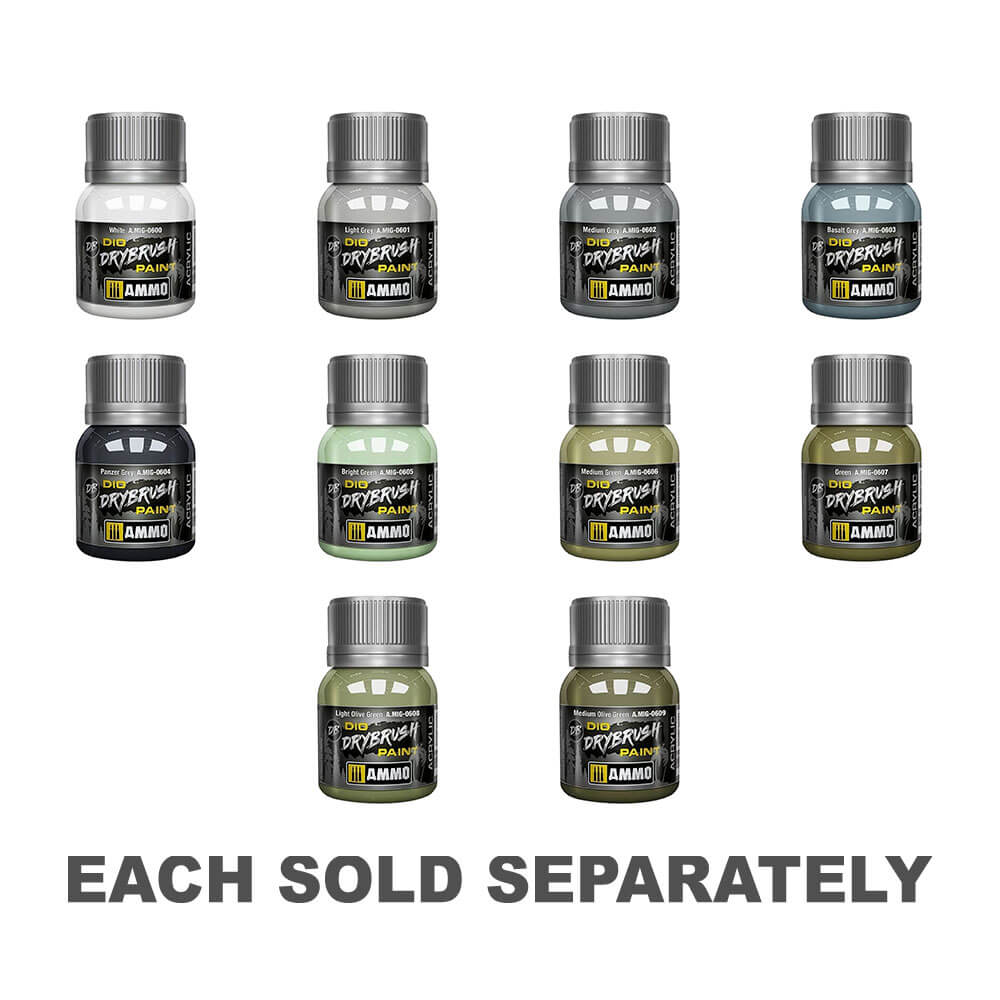 DryBrushing es una técnica de la vieja escuela que ha sido utilizada por modeladores durante décadas. Con él, tratamos de enfatizar la apariencia tridimensional de las diferentes texturas y detalles de nuestros modelos. Debido a su simplicidad y aplicación rápida, se utilizó en la industria del cine para pintar conjuntos y modelos. Durante muchos años fue la técnica más utilizada por todos los modeladores de todo el mundo. Aunque eventualmente aparecieron otras nuevas técnicas de meteorización, el escrutinio seco todavía se usa ampliamente para dioramas y bases, edificios, ciencia ficción y juegos de guerra, fantasía, figuras y vehículos militares. Es una técnica versátil y fácil de usar que puede producir efectos convincentes del volumen, texturas auténticas y resaltar detalles sobre cualquier modelo.