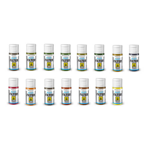 Los nuevos filtros acrílicos de AMMO están diseñados para aplicarse directamente al modelo. Esta nueva gama le permite agregar variación de color a sus miniaturas, armonizar varios colores de camuflaje o distinguir áreas con un tono diferente. El filtro acrílico se puede aplicar fácilmente con un cepillo, lo que evita la necesidad de un enmascaramiento complicado. Humedecer el cepillo con el producto y aplicarlo sin inundar la superficie. Gracias a la formulación innovadora, los filtros acrílicos se pueden retocar o eliminarse de manera simple y fácil con agua durante el tiempo seco extendido, cada filtro se secará por completo en 24 horas. Estos filtros versátiles también pueden aplicarse con un aerógrafo para un número interminable de efectos. Gracias a la amplia gama de 30 colores disponibles, no necesitará hacer mezclas complejas, ajustar la relación de adelgazamiento adecuada o ajustar el tono al tono previsto. Cada color se puede mezclar entre sí o teñir con otros acrílicos de munición