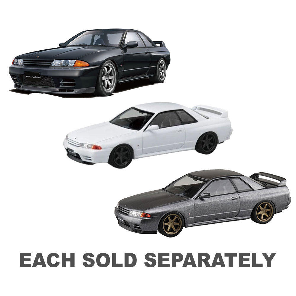 This scale model highlights the R32 Skyline GT-R in a sophisticated Black Pearl Metallic finish, giving it a sleek yet menacing look. The custom wheels add a modern touch to the legendary silhouette, making it an essential piece for enthusiasts of high-performance tuning culture.