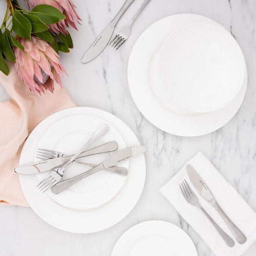 La cocina de Wilkie Brothers está elaborada por una porcelana de hueso nuevo de alta calidad que es liviano, fuerte y duradero. Diseñado en formas clásicas y atemporales, la porcelana súper blanca se puede mezclar y combinar para adaptarse a cualquier hogar u ocasión. Cada pieza es lavavajillas, congelador y horno seguros para facilitar el cuidado y el mantenimiento.