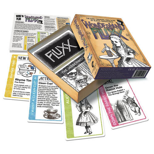 En Wonderland FluxX, puedes bajar por la madriguera del conejo para unirte a Alice mientras toma el té con el sombrerero loco, obtiene instrucciones del gato de Cheshire, trata de razonar con Tweedle Dee y Tweedle Dum, y crece y se encoge de manera alarmante. Es posible que incluso necesite matar a un Jabberwock para ganar en esta versión aún más curiosa de Fluxx ...