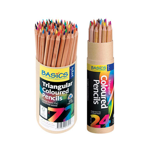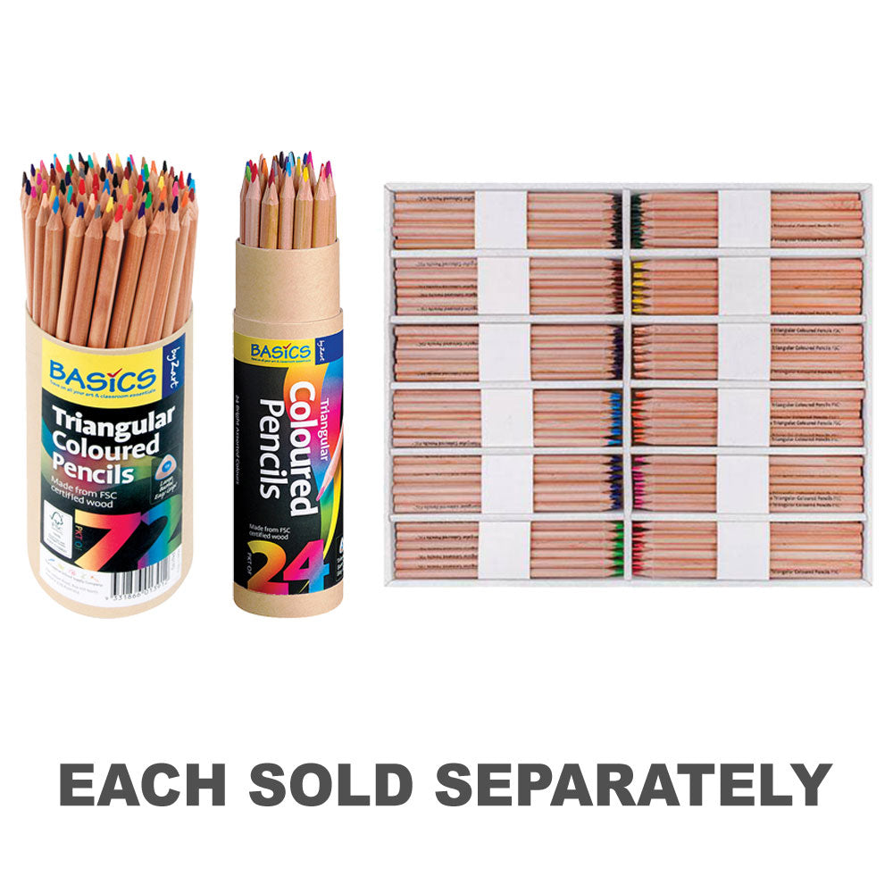 The Basics Triangular Colour Pencils Assorted 72's, a vibrant set of colour pencils designed with a comfortable and ergonomic triangular barrel. Made from FSC certified wood, these pencils ensure sustainability and responsible forestry practices. This pack is ideal for school, home, or any colouring project.