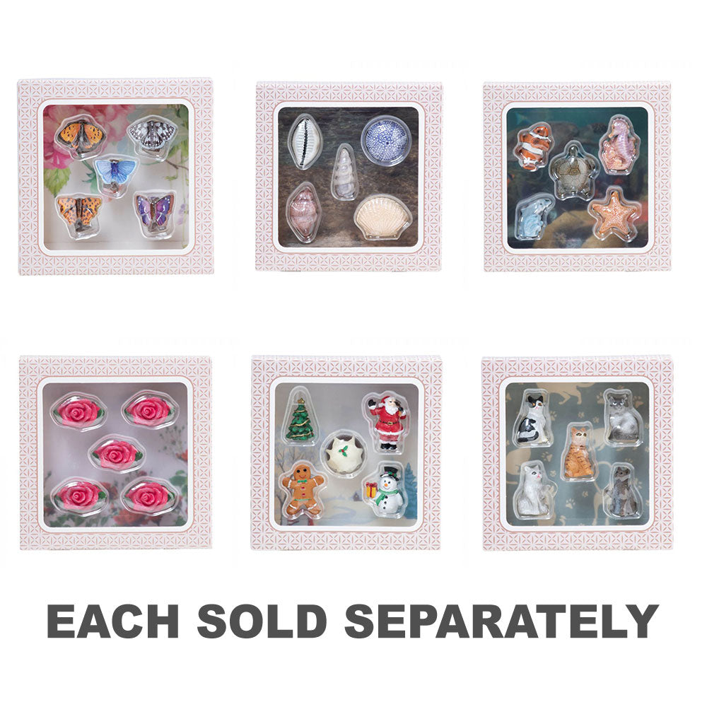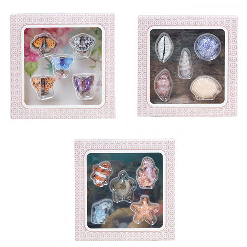 - Solgt i et sæt af 5 sommerfugldesign (lille kobber, marmoreret hvid, fælles blå, komma & lilla kejser)