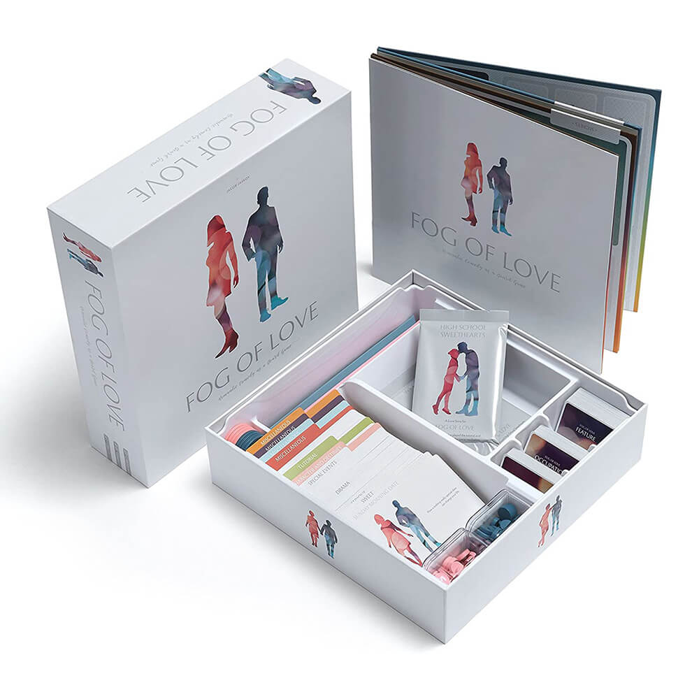 • Inkluderer 1 regelbog, Game Board, 2 dobbeltsidede karakterbiler, 2 kortholdere,