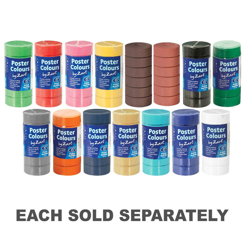 Refill for this long lasting poster colour paint is both easy to use and to store, making it an ideal option for classrooms. All that is required is water and you are set to go! These paints are easy to clean up and will not result in any wastage - unlike those stored in bottles or tubes.
