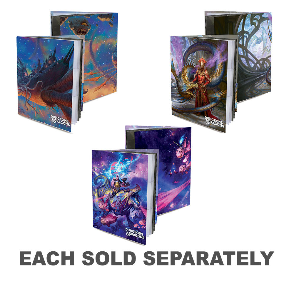 Charakter-Folio mit Aufklebern – Astral Adventurer's Guide – Dungeons & Dragons-Cover-Serie Organisieren und bewahren Sie Ihre Notizen, Charakterblätter und Zauberkarten in einem Charakter-Folio auf! Jedes Folio verfügt über ein farbenfrohes, voll bedrucktes Cover und Innentaschen, darunter 10 Seiten mit einer Tasche für Charakterblätter und Notizen sowie zwei Seiten mit 9 Taschen für Zauberkarten in Standardgröße. Charakterfolios enthalten jetzt einen Aufkleberbogen, damit Sie Ihre Abenteuer besser organisieren können!