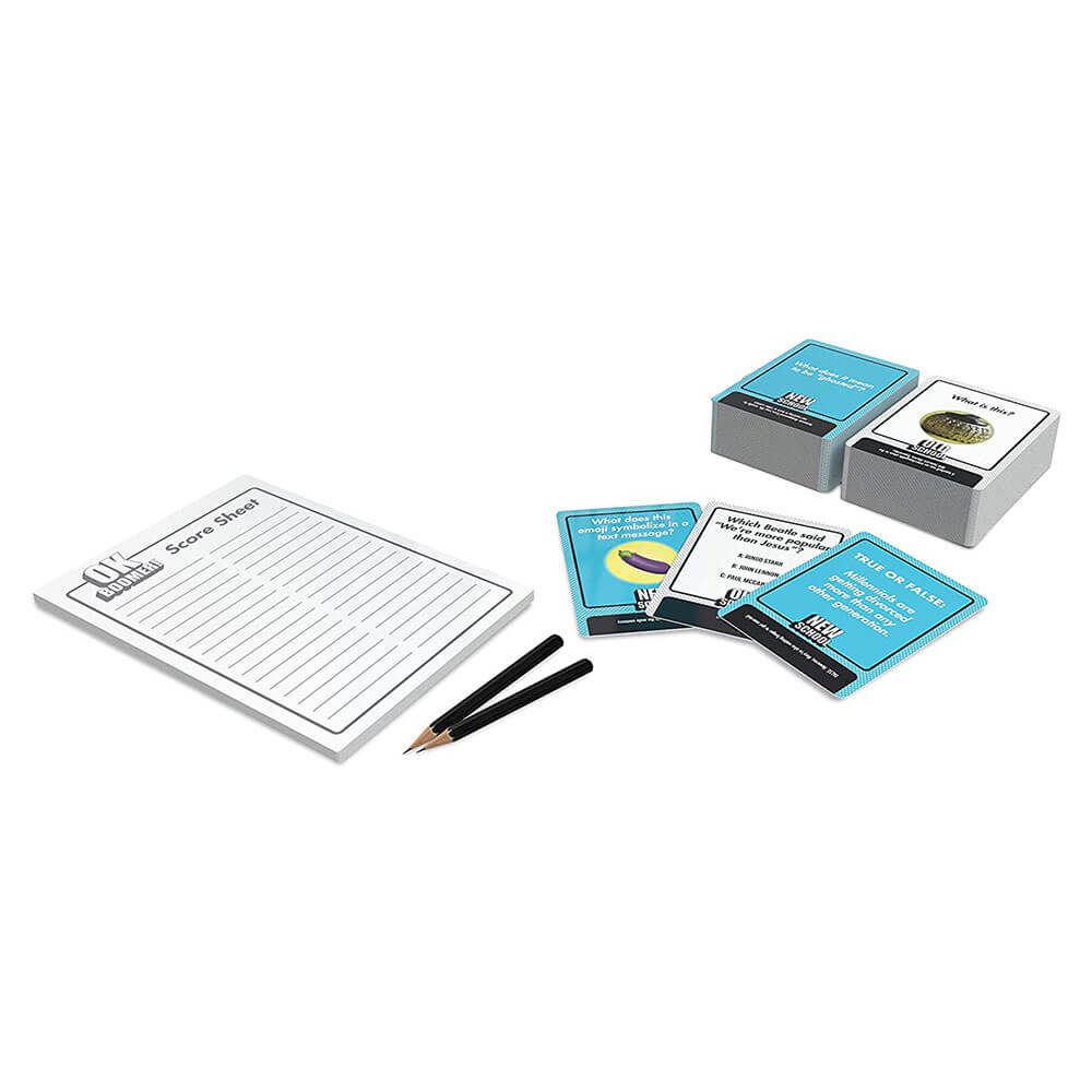 OK Boomer für Spiele für Erwachsene. Bist du außer Kontakt oder ist dein Quizspiel stark? Bringen Sie die Generationen für dieses unterhaltsame Partyspiel zusammen, bei dem Sie Ihren Altersunterschied auf die Probe stellen! Teilen Sie sich in Teams auf: Old School vs. New School. Von umgangssprachlichen Wörtern bis hin zu Zeichentrickfiguren errät New School Quizfragen über die alte Schule und umgekehrt! Jeder, der das Team mehr über die andere Seite kennt, wird wirklich wach!