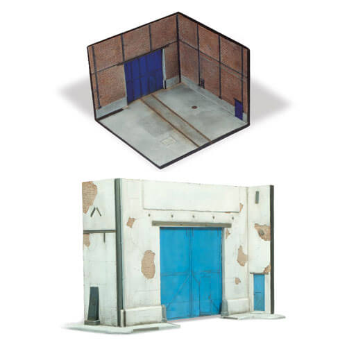 - Komplettes europäisches Fabrikinterieur, einschließlich großer Details in Texturen und Materialien, mit einem Metalltor und Seitenstützen, ideal für Dioramen im Maßstab 1:72.