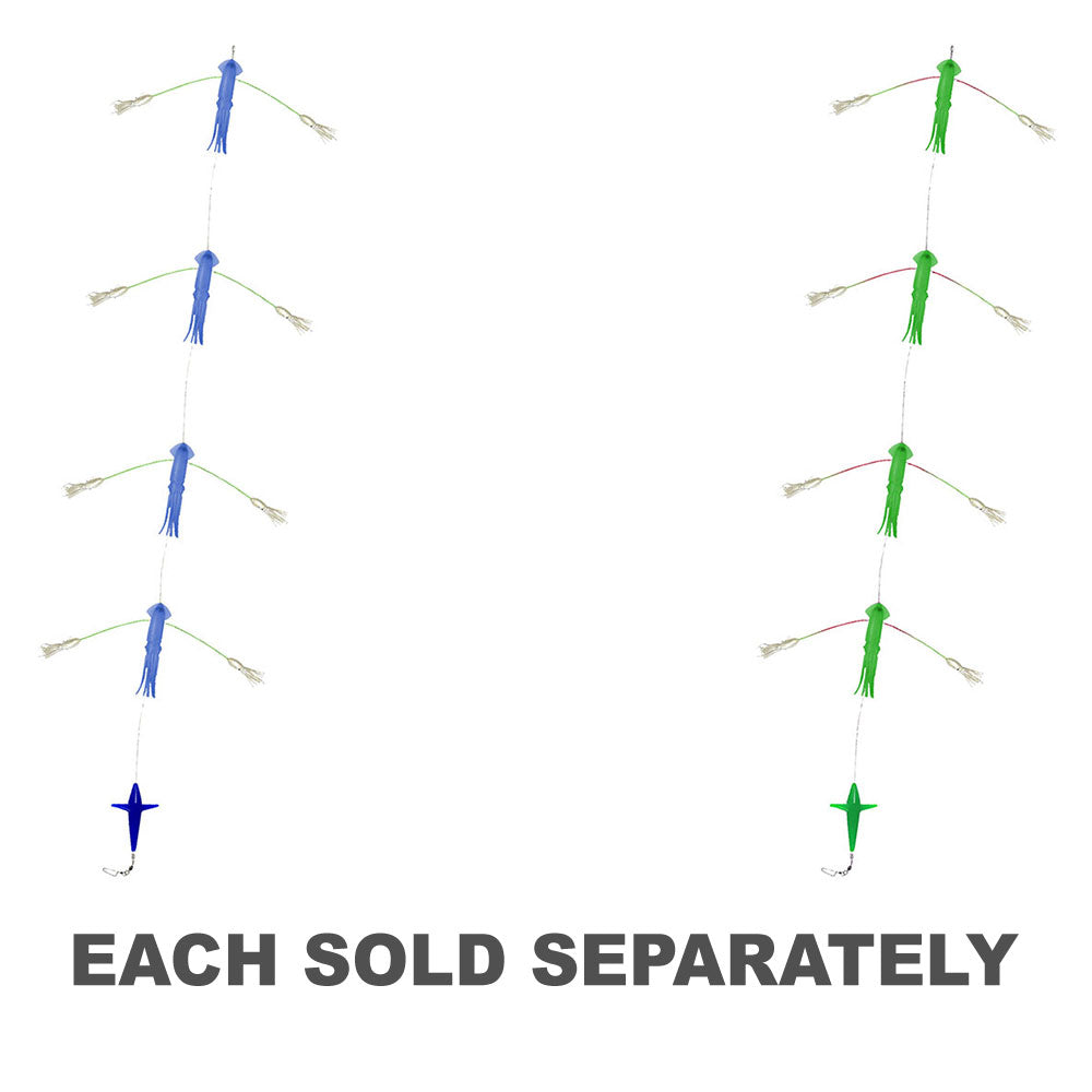 This chain is made with 9-inch AFN rubber squid with 5-inch scatter squids on the arms. This is then complimented with an AFN rubber 5-inch bird at the tail.