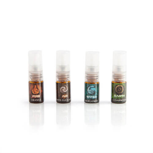 • 4 element & essential oil mixes: fire/orange, water/bergamot, air/lemon eucalyptus, earth/cedarwood.