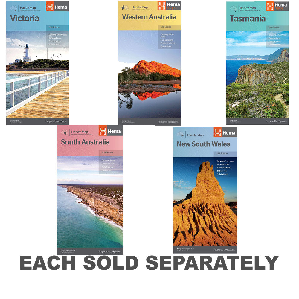Hema's Handy Map has been revised for its 12th edition, with, updated roads, greater detail, distance grid and index for planning and reference.
