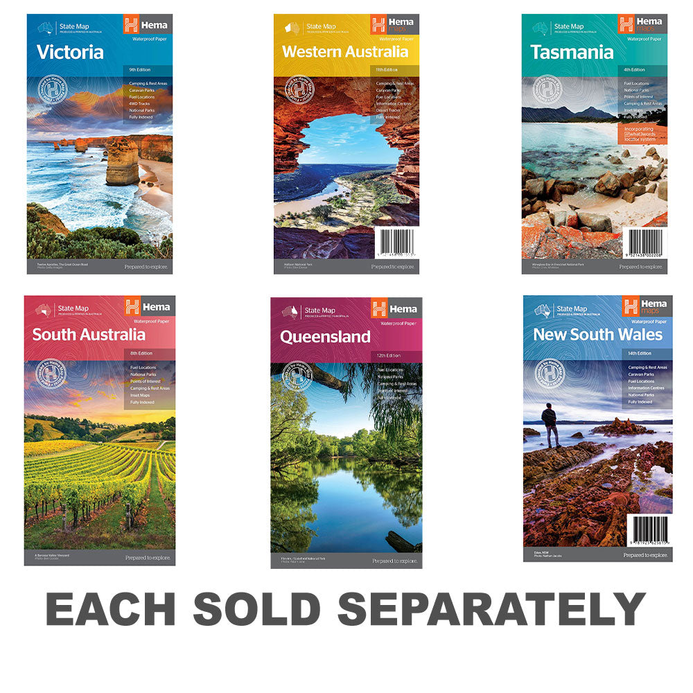 A comprehensive map of Victoria for touring throughout the state that has camping and rest areas, 24-hour fuel and points of interest marked on the mapping.
