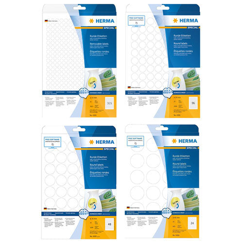 Add a touch of charm to your labeling tasks with Herma Round Removable Labels! This pack includes 25 white labels in a round shape, perfect for a variety of labeling applications. With a removable adhesive backing, these labels offer convenience and flexibility for temporary labeling needs. Whether for organizing, crafting, or personal use, these round removable labels provide versatility and charm for all your labeling needs. Get ready to make your labels stand out with Herma Round Removable Labels!