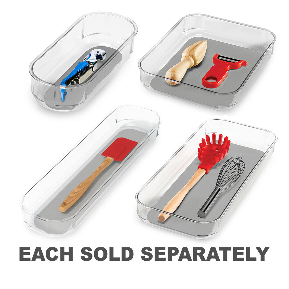 The bin is suitable for anywhere in the home, from the kitchen to the bathroom. The crystal clear plastic provides visibility, while soft-grip lining and non-slip rubber feet keep items in place.