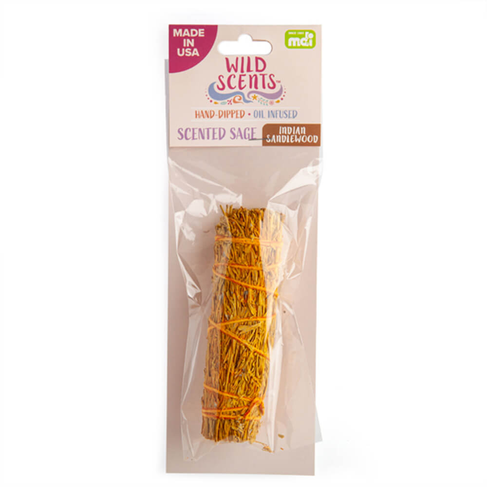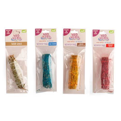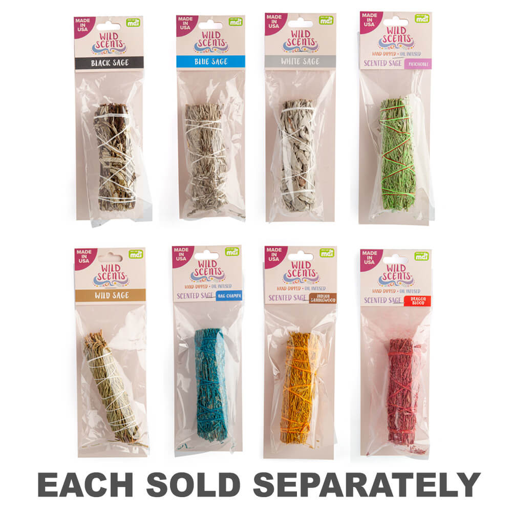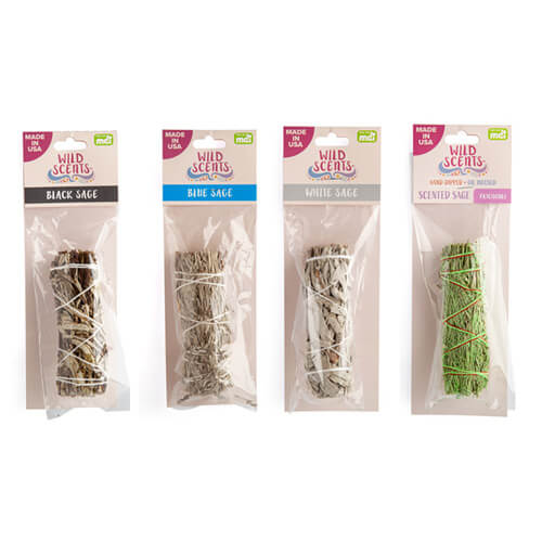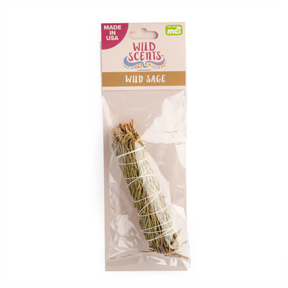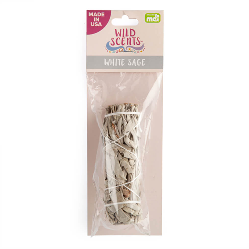 Hand-bound sage smudge stick made of white sage leaves and stems. Cleanse and purify your space with its sweet aromatic scent. Made in the USA.