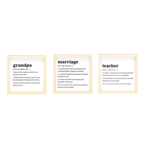 This Defined mini framed art features a minimalist black and white design with an original Marriage definition. The perfect gift for your significant other to celebrate an anniversary or just because!