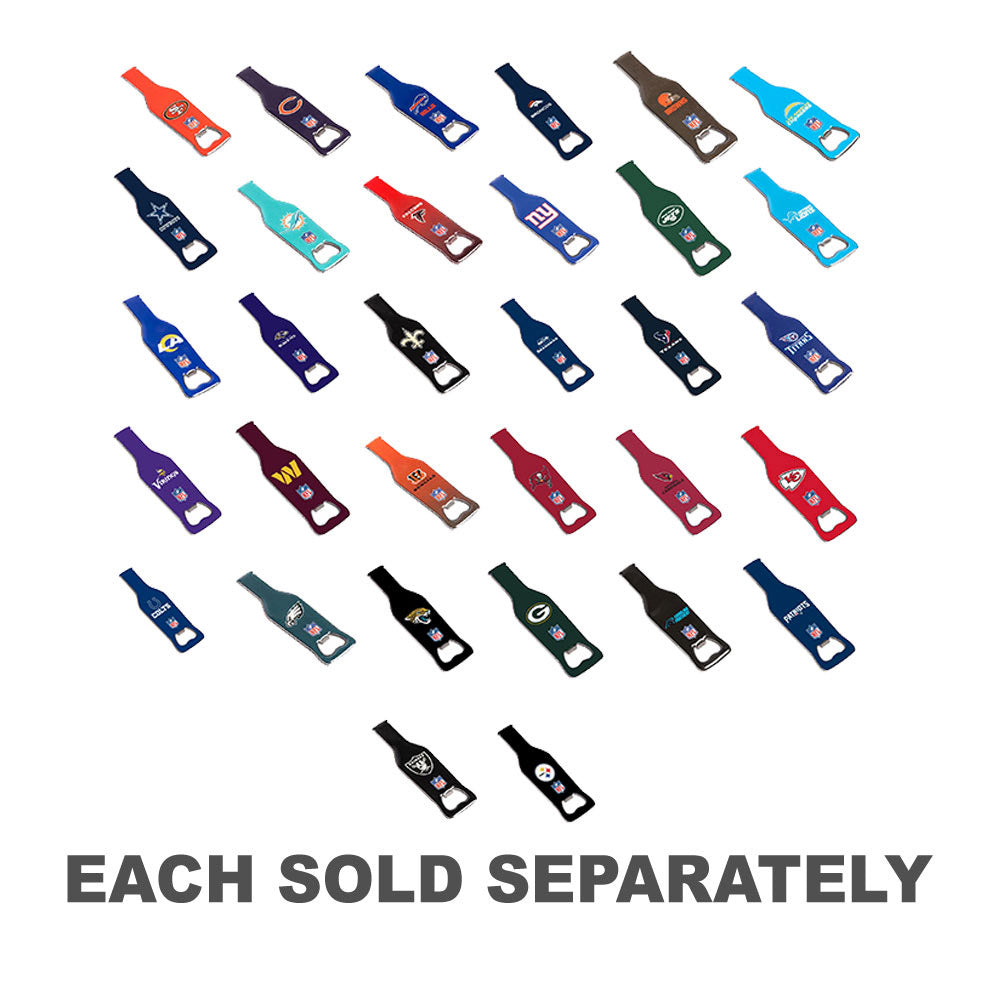 Introducing the officially NFL licensed Magnetic Bottle Opener by the Stubby Club! With vibrant team graphics, this lightweight opener is perfect for on-the-go use, attaching easily to backpacks or gym bags, making it ideal for parties or BBQs to crack open a cold drink in style.