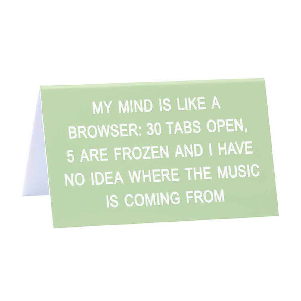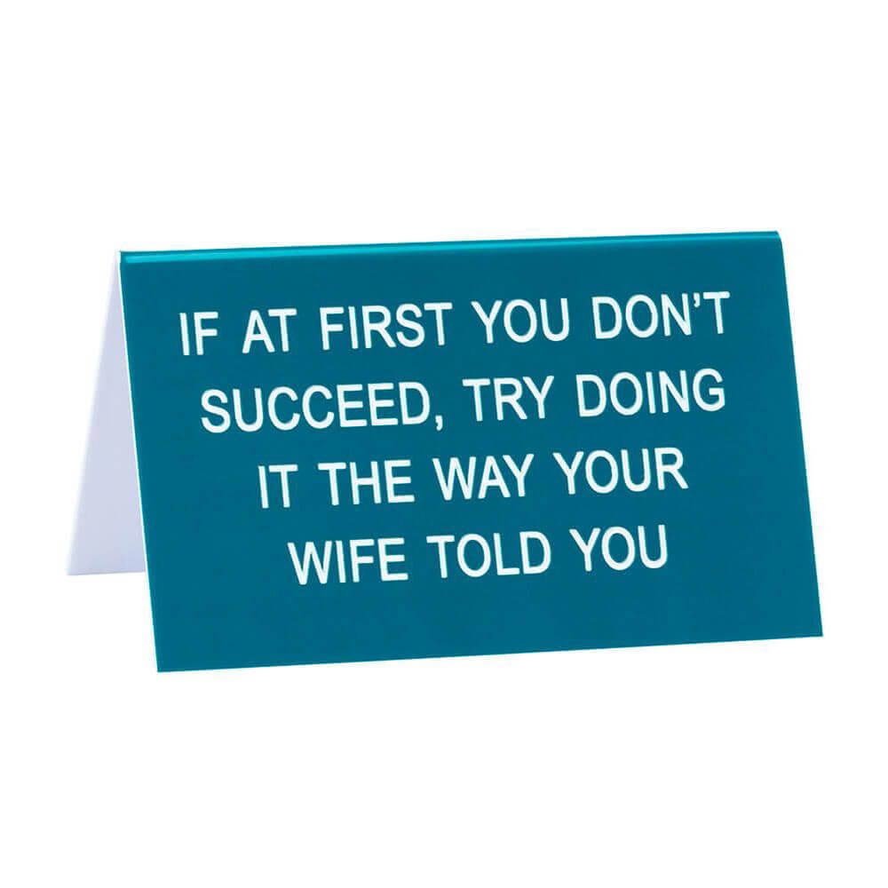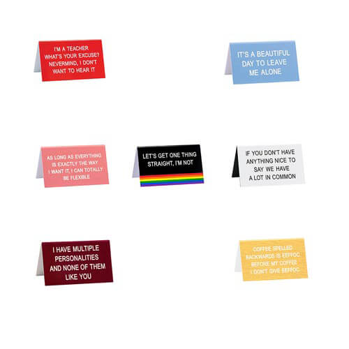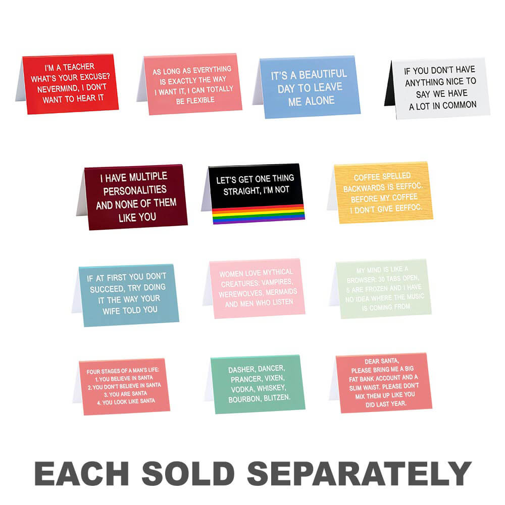 Break up the monotony of work and bring some LOLs to the office with this burgundy desk sign from SAY WHAT?. Caption reads: 'I Have Multiple Personalities And None Of Them Like You'. Product measures 11.5cm x 7cm.