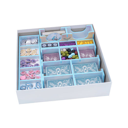 Insert compatible with Barcelona®, including the Passeig de Gràcia® expansion. The design provides both efficient storage and improved game play. Many of the trays can be utilised during the game, and they greatly aid set-up and clear-away times. The rules and boards act as a lid on top of the trays