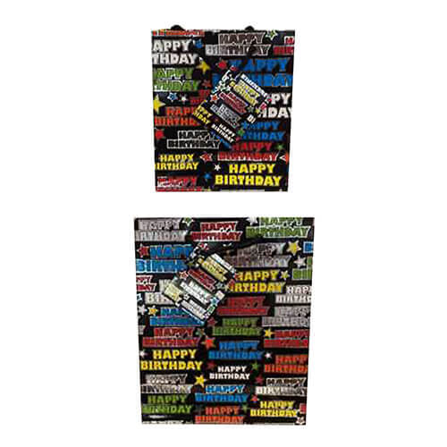 Bolsa regalo feliz cumpleaños Ozcorp color negro.