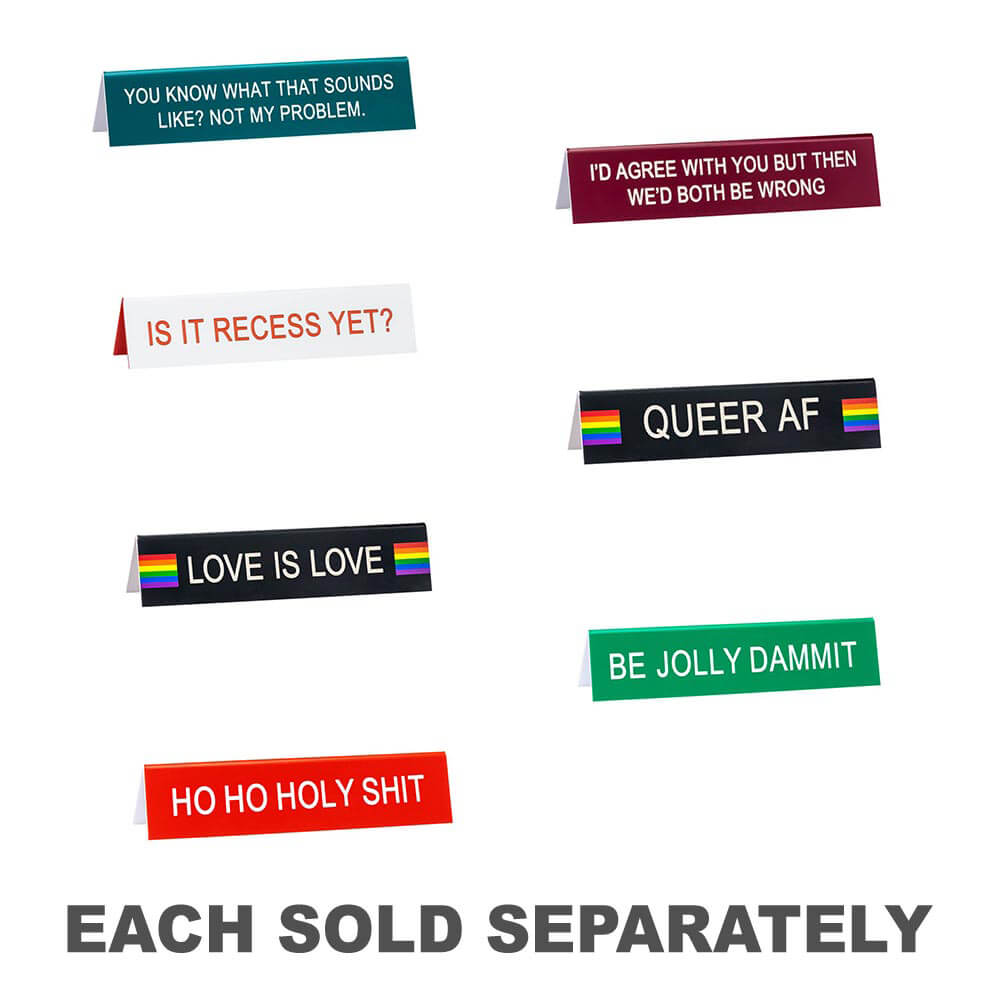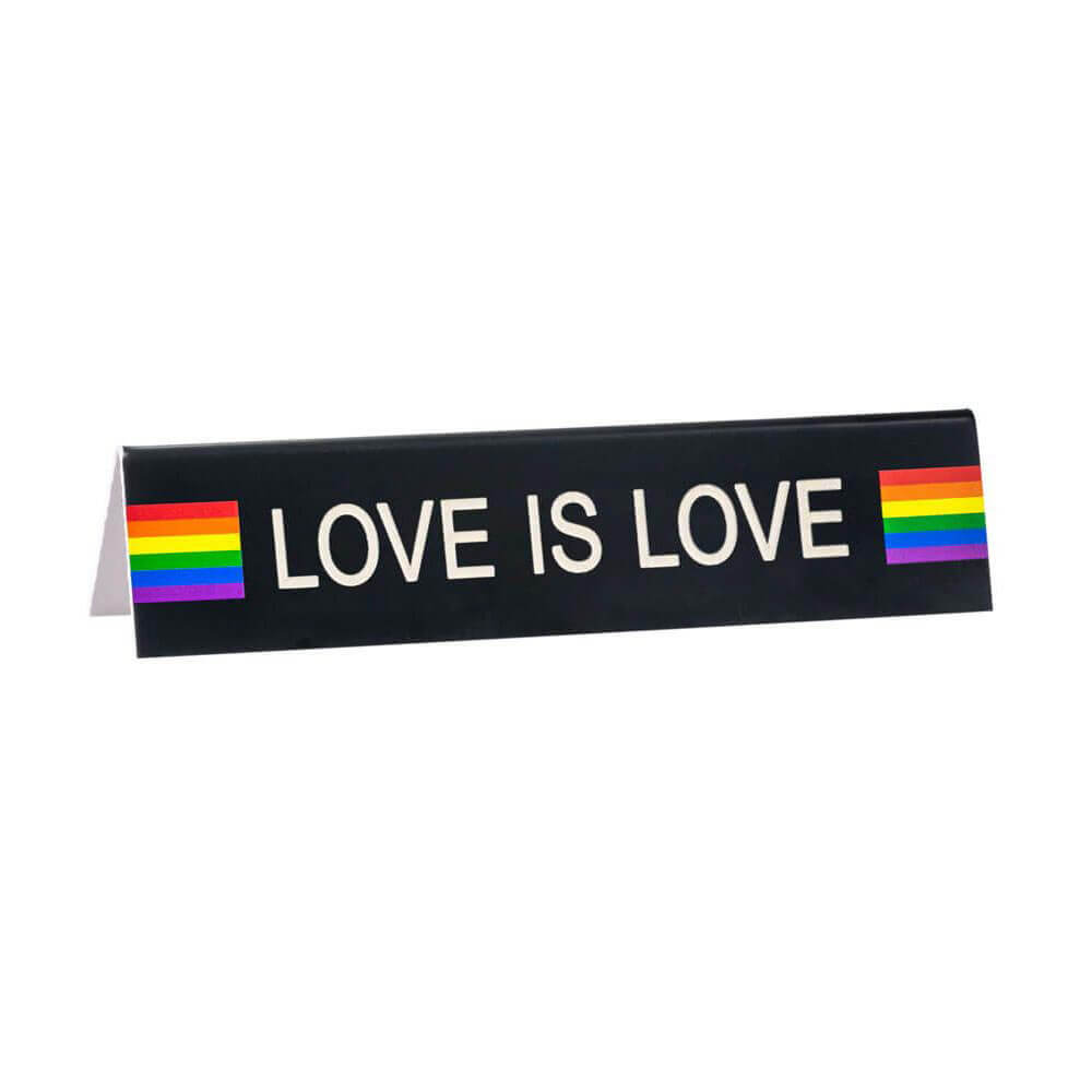 Rompi la monotonia del lavoro e porta alcuni LOL in ufficio con questo segno di scrivania Black and Rainbow Pride da dire cosa?. La didascalia recita: "L'amore è amore". Misura del prodotto 14,5 x 3 cm.