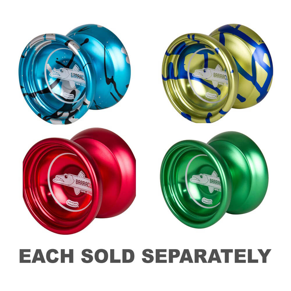 Progettato dal campione del mondo Rafael Matsunaga, il Barracuda è tornato! Utilizzato per vincere 8 titoli nazionali e mondiali, The Barracuda è un design ben noto famoso per la sua estetica, tempo di spin e prestazioni competitive. Questa nuova versione mantiene tutto ciò, la modifica e aggiunge un nuovo sapore a ogni tiro. Riportare questo leggendario yoyo significa creare più campioni del mondo.