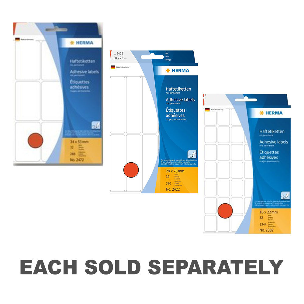Make your labels stand out with Herma Multipurpose Labels in Red! Whether you're marking important documents, highlighting key information, or adding color-coded tags, these red labels offer visibility and convenience. With their adhesive backing and bold color, Herma Red Multipurpose Labels provide a convenient solution for a variety of labeling needs. Get ready to label with impact and efficiency with Herma Multipurpose Labels in Red!