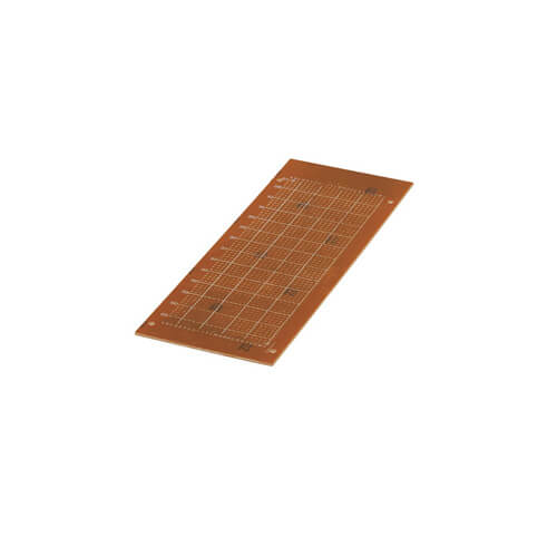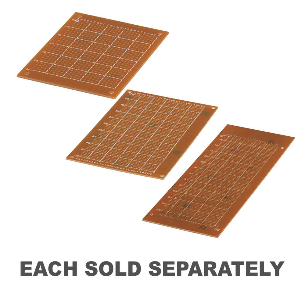 Il modo a basso costo per costruire prototipi. Ogni ciambella è separata dai suoi vicini da uno spazio di circa 0,5 mm. Ciò isola efficacemente ogni pad, ma semplifica anche la saldatura per fare interconnessioni. Ogni tavola ha anche "dita" alle estremità opposte con un tono di 3,6 mm. Questi possono essere utilizzati per connettersi da e verso la scheda o a un connettore del bordo della scheda. Infine, il lato non saldato della scheda ha una griglia alfa-numerica stampata su di essa per aiutare nel layout della scheda di identificazione dei componenti.