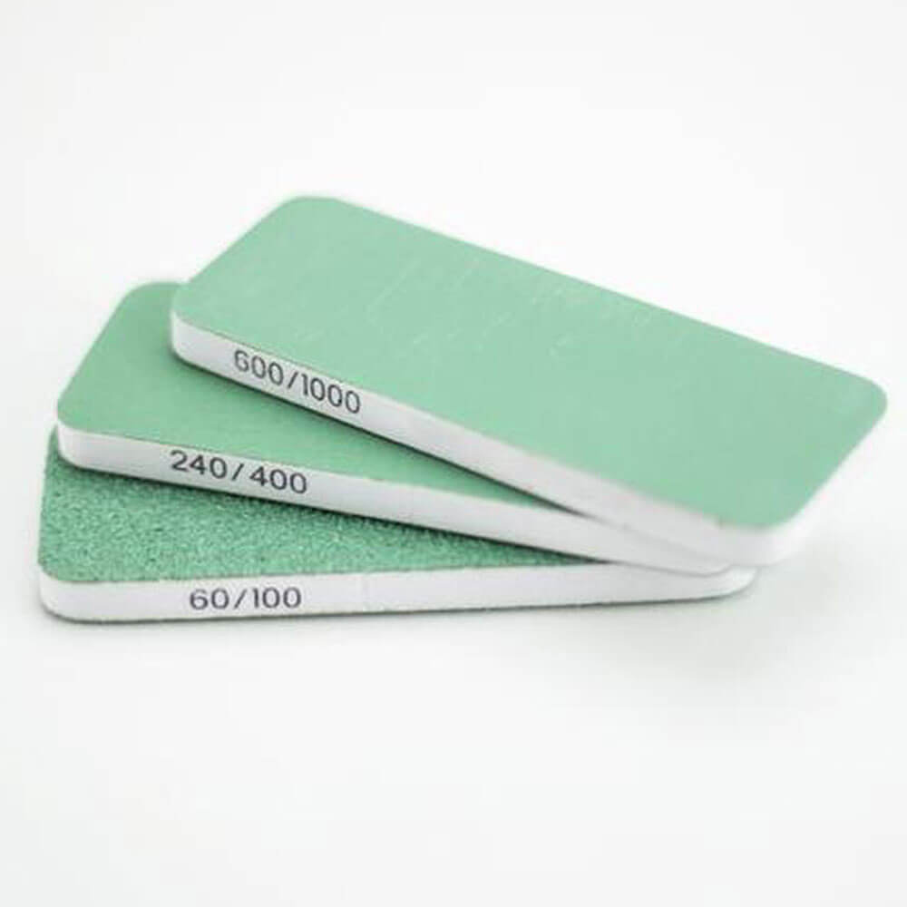 I Flexi Sanders sono un set di 3 e sono lavabili e riutilizzabili. Offrono le seguenti combinazioni di grado: grossolano (60/100): rimozione del materiale efficace. Medium (240/400): miscelazione e lisciatura.fine (600/1000): finitura e lucidatura.