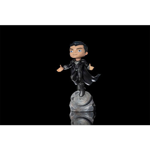 彼の新しい特別な黒と銀のユニフォームで、マン・オブ・スチールは太陽エネルギーを吸収し、すべての力を回復し、征服者のダークセイドの強力な新しい神の布告者である悪役のステッペンウルフと向き合う準備をします。彼の紛れもないクリプトンのグリフが銀の形をした「S」の形で胸に希望の象徴であるため、彼はジャスティスリーグのヒーロー、友人、同盟国に加わり、地球を守ります。監督のザック・スナイダーのジャスティス・リーグ映画のように、アイアン・スタジオは「スーパーマン・ブラック・スーツ - ジャスティス・リーグ - ミニコ」像を特徴としており、彼の特別な外観で史上最高のヒーローをフィーチャーしています。