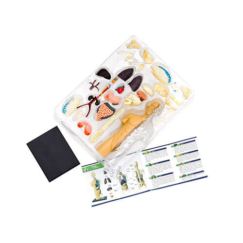 人間の解剖学は、人体の構造に関連する生物学のセクションです。このキットを使用すると、自分の男性の胴体を組み立てることで、人体について調査して学ぶことができます。スケルトンと臓器の各部分は、ジグソーパズルのパズルのようにぴったり合っているため、脳、骨格、消化器系、心血管系など、その中の臓器を理解できます。