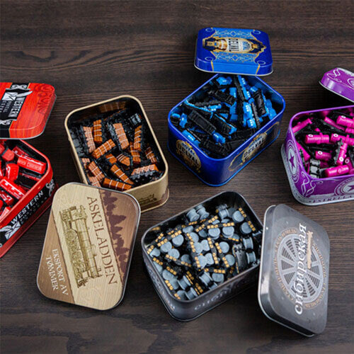 • ユニークなブリキの箱に保管されている細かく詳細なプラスチックの列車と駅