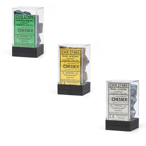 Signature Diceは、過去数年間にリリースされた新しいサイコロのベストセラー色の編集です。多種多様な色と素材が含まれていますが、それぞれがサイコロコレクションにユニークで興味深い追加です。このセットには、1つのD20、1つのD12、2つのD10(00-90および0-9)、1つのD8、1つのD6、および1つのD4が含まれています。