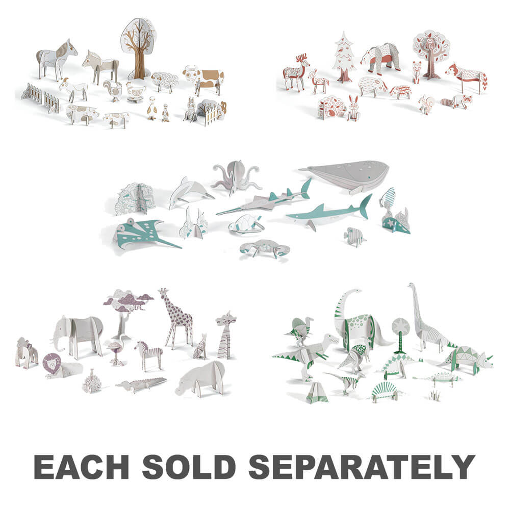 さまざまな段ボールのピースを備えた創造的でインタラクティブなキットを着色して組み立て、動物と一緒に森林の森のシーンを作成します。デザインとアートのアクティビティコンポーネントが完全なものになったら、子供は自分が作るすべての要素で遊ぶことができ、それは素晴らしい物語の始まりです!このセットはFSC認定製品です。