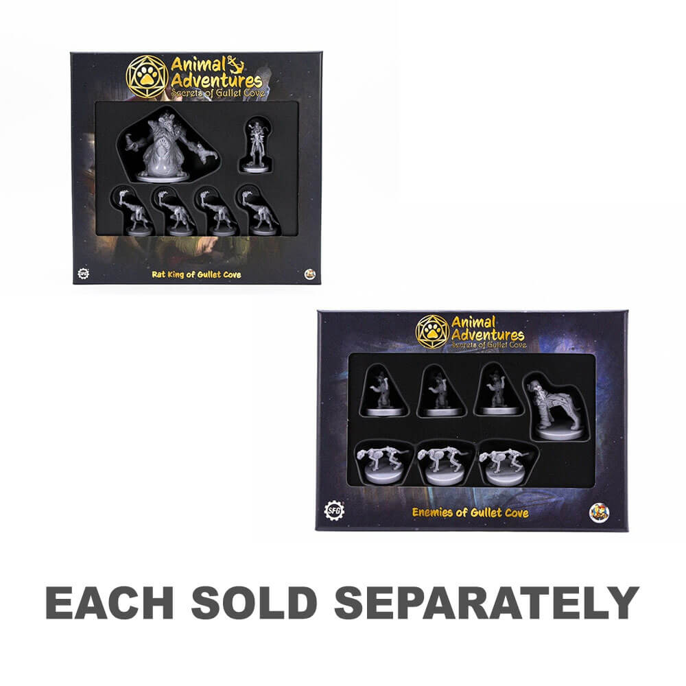 このボックスの中には、ペイントまたはプレイする準備ができている、完全に組み立てられた非常に詳細なミニチュアが6つあります。これらの恐ろしい悪役を使用すると、ガレットコーブのソースブックの秘密で動物の冒険の犯罪界を探索したり、ファンタジーキャンペーンの敵として使用したりできます。唯一の制限はあなたの想像力です!