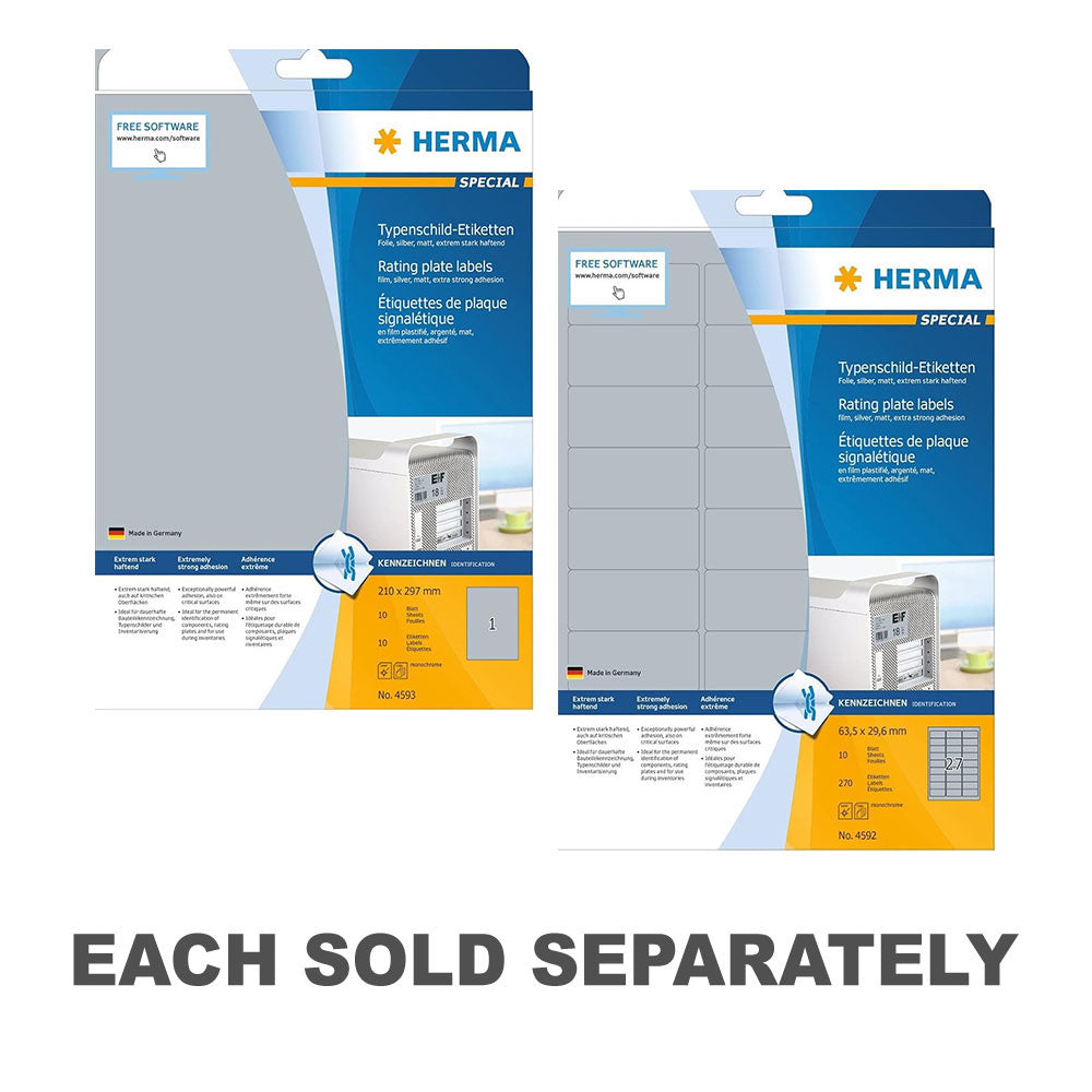 A4サイズで入手できるHerma Rating Plateラベルとエレガントな銀の10個のパックでラベル付け基準を高めてください!耐久性と洗練の両方を提供するラベルが必要ですか?これらの評価プレートラベルはあなたの答えです。機械、機器、電化製品のラベルを付けている場合でも、これらのラベルはプロジェクトにプロの仕上げを提供します。それらのメタリックシルバーフィニッシュは、品質と耐久性の感覚を醸し出しますが、それらの接着剤は安全な愛着を保証します。普通のラベルに別れを告げ、卓越性を紹介するための重要なツールであるHerma Rating Plate Labelsでプレミアム品質に挨拶してください!