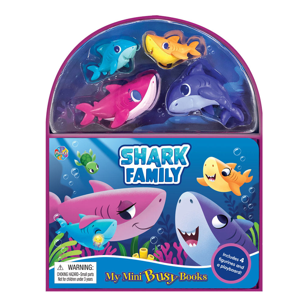 Inside, discover a sturdy board book bursting with colorful images and a lively story that will capture the imagination. But that's not all - this captivating set also includes four plastic figurines and a fold-out playboard, allowing children to dive into the world of the Shark Family and create their own underwater escapades!