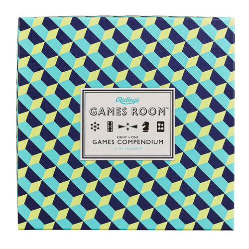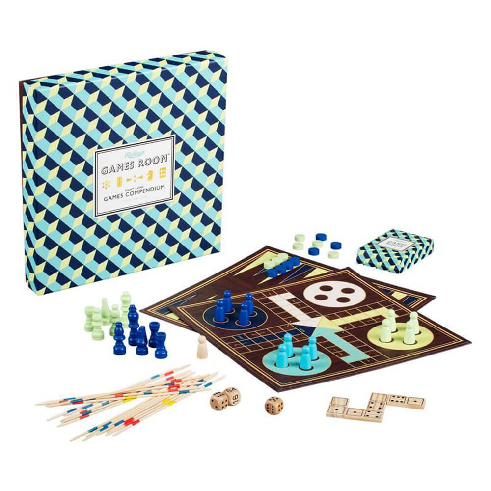 Houd een klassieke gamesavond in met dit gamescompendium uit Ridley's Games! Acht-in-één spellen compendium. Verpakt in geometrische printdoos. Bevat backgammon, schaken, Chinese checkers, domino's, concepten/checkers, ludo, pick-up sticks, speelkaarten en instructies.