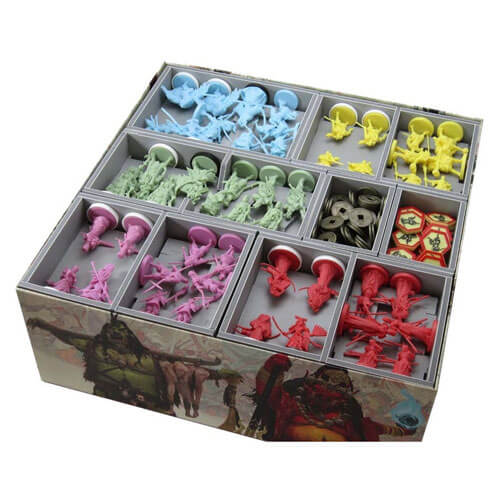 Deze insert is ontworpen om compatibel te zijn met Rising Sun®, zowel de retail als de Kickstarter -edities. Het ontwerp biedt zowel efficiënte opslag als verbeterde gameplay. Veel van de trays kunnen tijdens de game worden gebruikt, en ze helpen de opzet en de opruimingstijden enorm. De regels en boards fungeren als een deksel bovenop de laden.