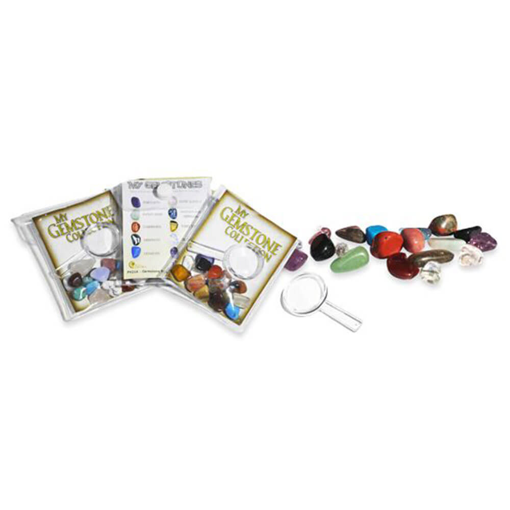 Hver pose leveres komplett med et forstørrelsesglass for å inspisere edelstenene nøye.