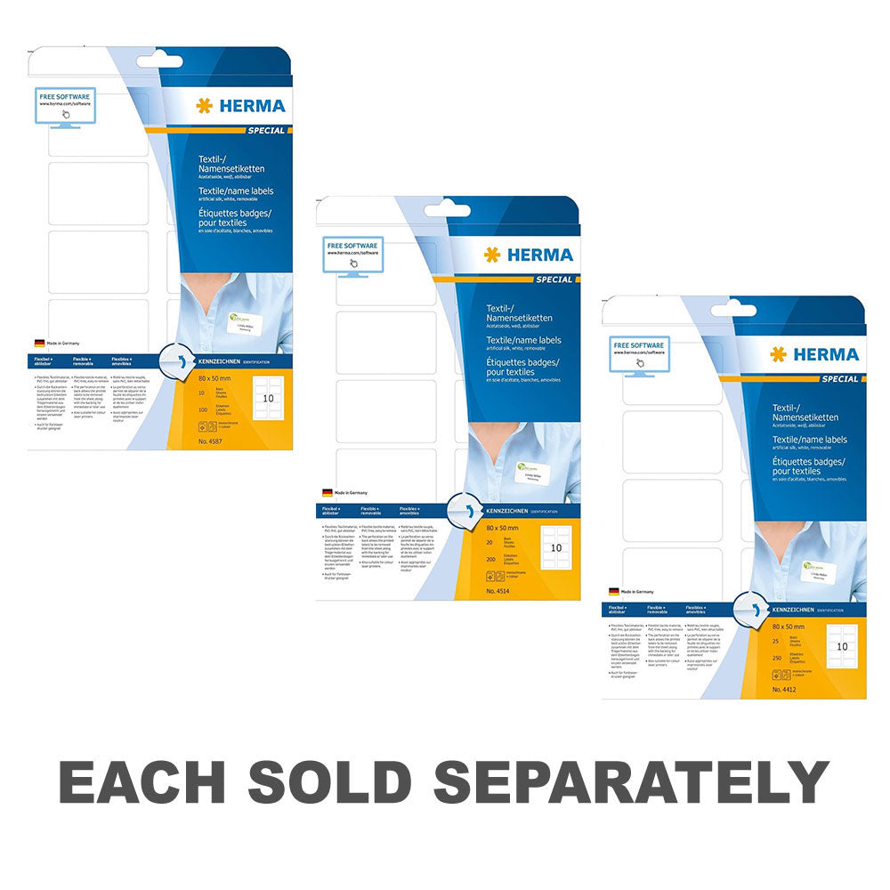 Ensure clear and professional labeling of your textile products with Herma Name/Textile Labels! This pack includes A4-sized labels in white, each measuring 80x50mm, offering ample space for text or logo printing. With a strong adhesive backing, these labels adhere securely to textile surfaces, ensuring long-lasting attachment. Whether for clothing, fabric items, or textile products, these name/textile labels provide versatility and reliability for all your labeling needs. Get ready to label your textile products with precision using Herma Name/Textile Labels!