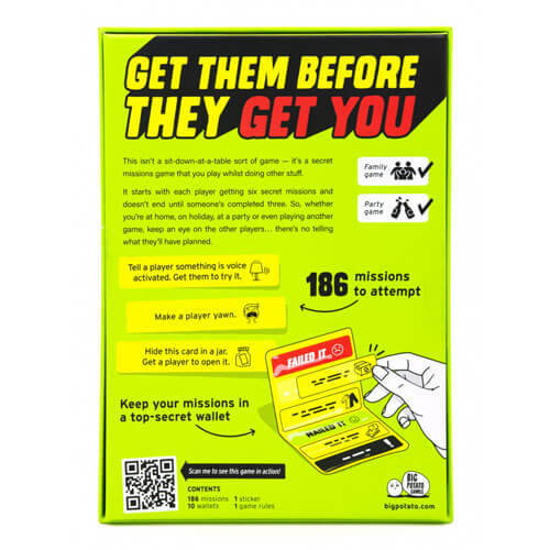 Med over 180 forskjellige oppdrag som kan forsøkes i masse forskjellige scenarier, er dette et av disse festspillene for både voksne og tenåringer. For å starte, får hver spiller en misjonslommebok med seks misjonskort, som de holder hemmelig fra noen andre.