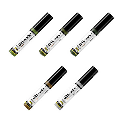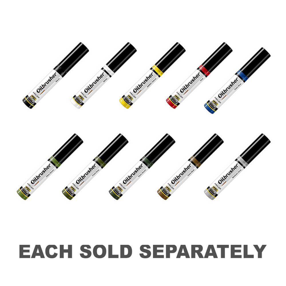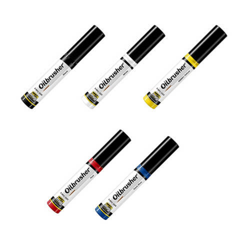 Nowy system olejowy jest najwyższym i rewolucyjnym produktem modelowania. Oilbrusher zawiera wysokiej jakości farbę olejową specjalnie opracowaną do użytku modelowania, rozcieńczoną do idealnej konsystencji, która ma być stosowana prosto ze słoika. CAP ma ekskluzywną wbudowaną, bardzo precyzyjną pędzel, aby zastosować kolor bezpośrednio na model, bez konieczności umieszczania farby olejnej na palecie lub kawałka kartonu. Ta ewolucja zapobiega wysuszeniu oleju i niepotrzebnym marnowaniu produktu. Ponadto nowoczesny pojemnik zawiera system-cleaner, który usuwa nadmiar farby z pędzla, pozostawiając odpowiednią ilość na końcówce. Tradycyjne rurki do farb olejnych były nieuporządkowane i trudne do otwarcia, gdy farba olejna wysycha wokół nasadki, powodując, że utknęła. Nie dzieje się tak z szczotką olejową, zawsze jest czysta i zawsze stabilna