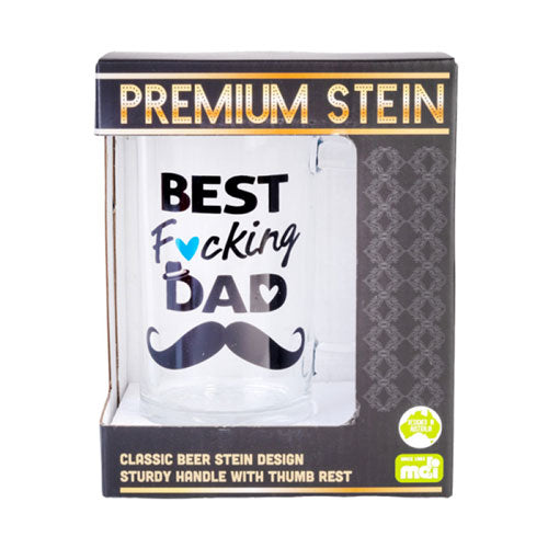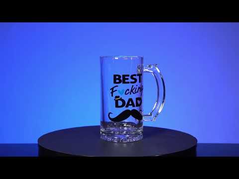 Pokaż tatę trochę uznania z tym bezczelnym szklanym piwem Steinem. Czarna naklejka brzmi „Najlepszy pieprzony tata” nad sylwetką wąsów. Posiada około 450 ml ulubionego alkoholu taty.