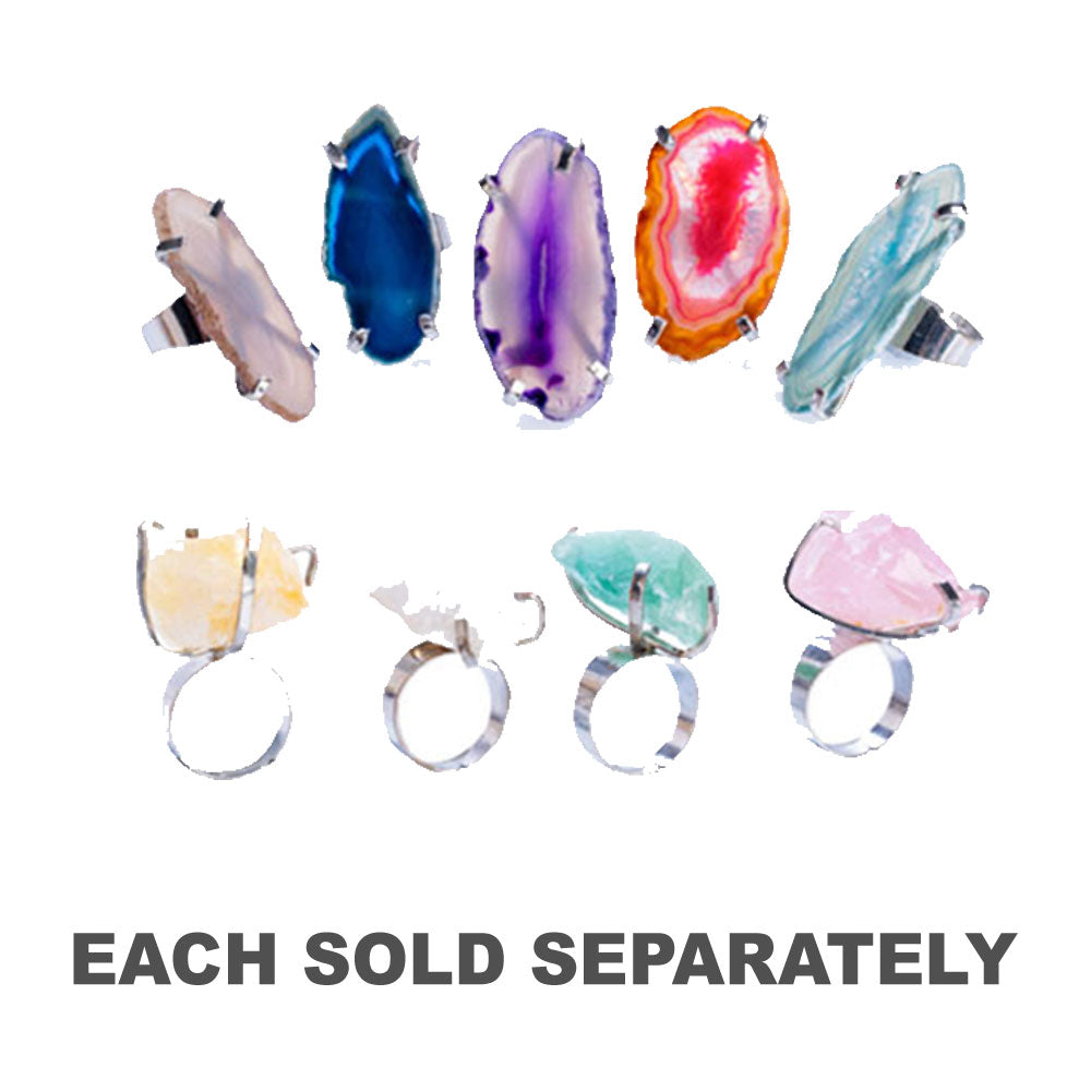 Hipnotyzujący tęczowy pierścień agatowy. Agat to uziemiający kamień znany z kojących i leczniczych możliwości. Srebrny pasek z czterema pazurami. Może się różnić od 5 kolorów.
