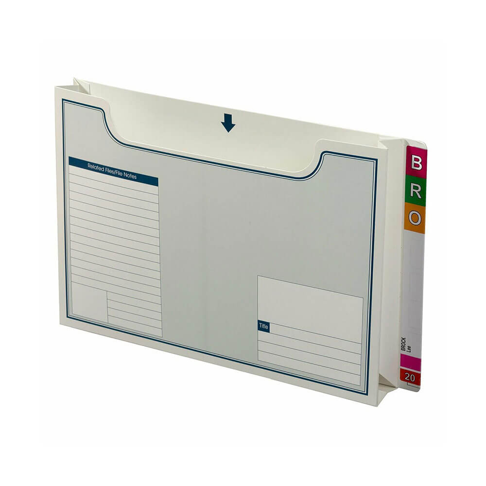 - Paneles impresos en la cubierta para permitir que las notas y la información relacionada del archivo se anoten directamente en el archivo