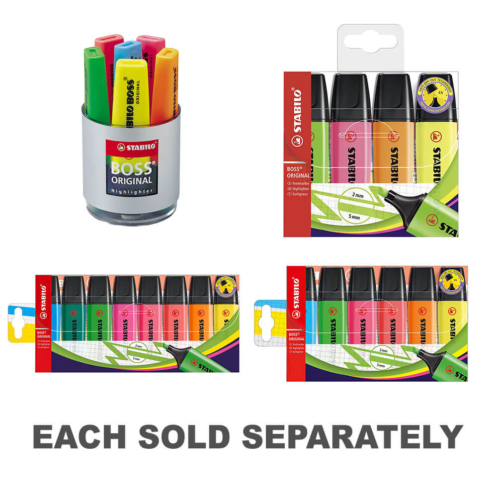 Estos marcadores cuentan con una punta biselada que permite dos anchos de línea diferentes y un diseño distintivo que se adapta perfectamente a la mano y evita que se muevan. La tinta vibrante a base de agua es adecuada para papel, copias o faxes. No se preocupe si accidentalmente olvida volver a colocar la tapa. Se pueden dejar descubiertas hasta 4 horas sin secar. Los colores del conjunto incluyen uno de cada verde, naranja, rosa y amarillo.
